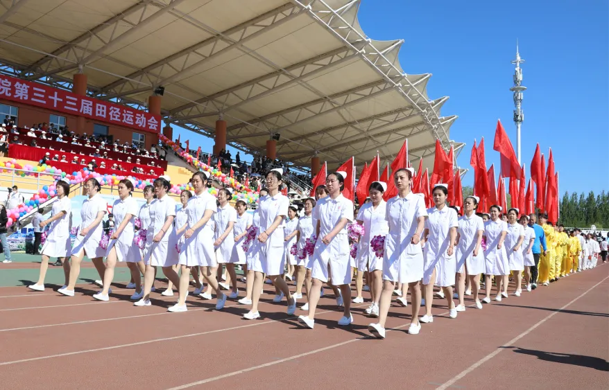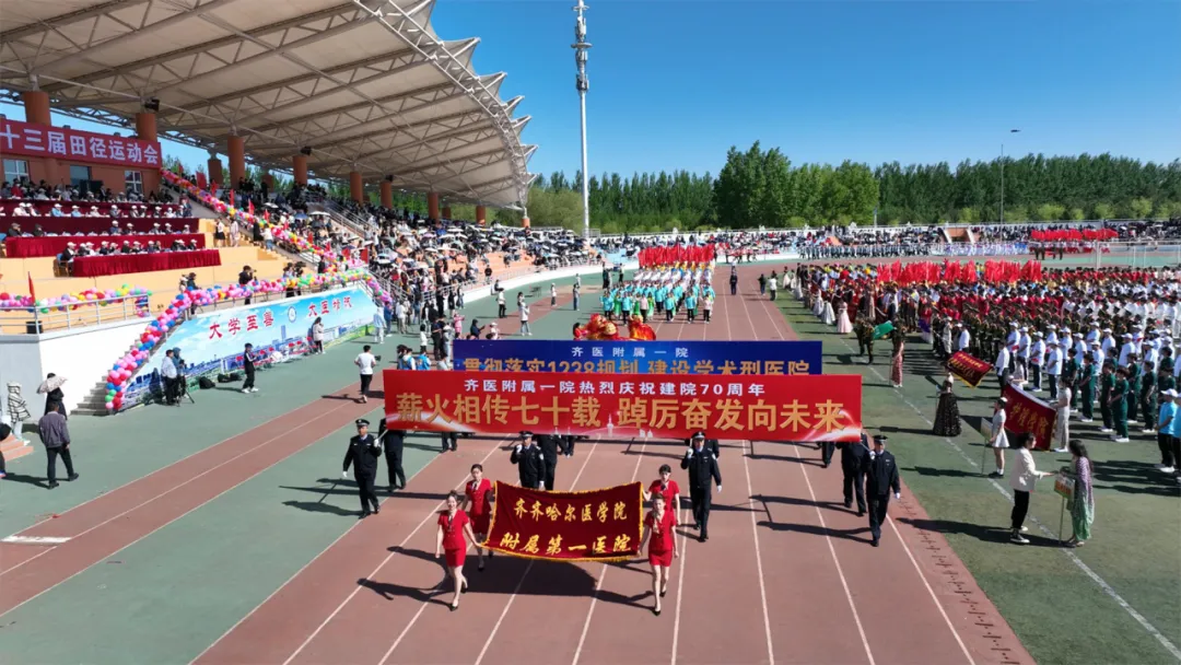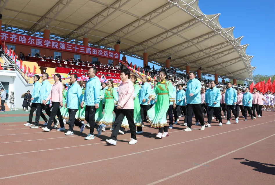 繁花争妍,春潮奔涌,青春正当时。5月23日,齐齐哈尔医学院第三十三届运动会如期开幕。开幕式上,我院领导班子率领专家方阵、护士方阵、学生方阵以及身着达斡尔民族服装的梅里斯分院职工400余人,迈着整齐的步伐,喊着响亮的口号,走过主席台前,接受主席台领导检阅。