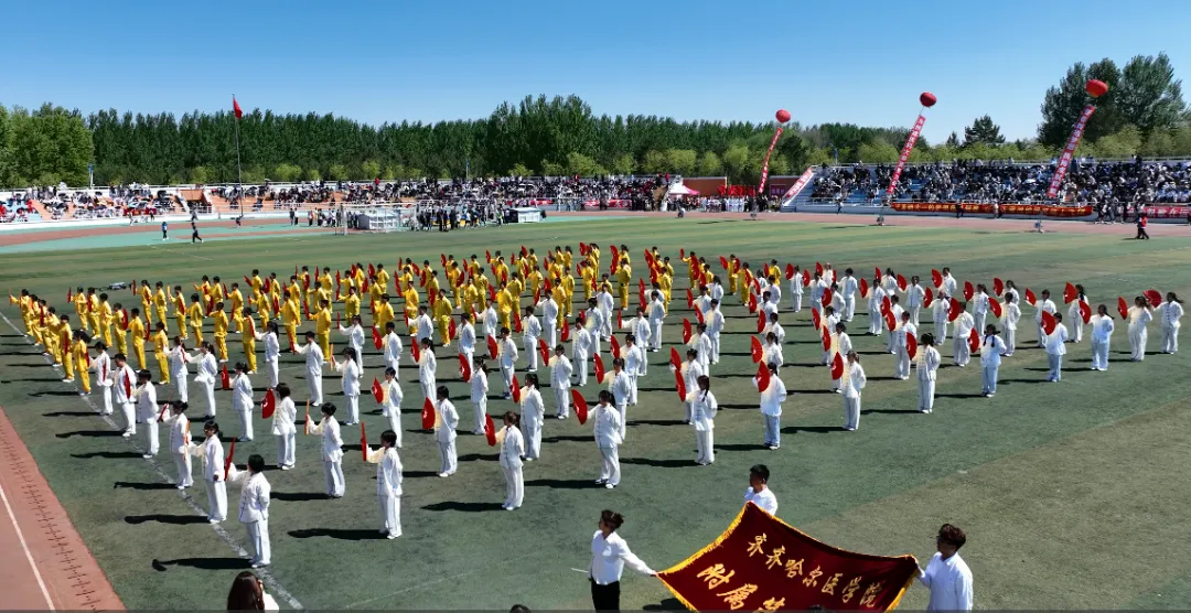 大型团体操表演历来是运动会上最具观赏性的节目之一,今年我院学生团体操带来的是太极拳表演——《乾坤柔劲秀 太极流水韵》,动听的乐曲与明艳的服饰交相辉映。学生们手持太极扇,衣袂飘飘,动作松弛有度、开合有序,展现出了太极扇的优雅与力量,流露中华文化的文雅与深厚底蕴,展现了齐医学子自信从容的精神面貌,构成一幅幅生动的画卷,最终荣获团体操三等奖。