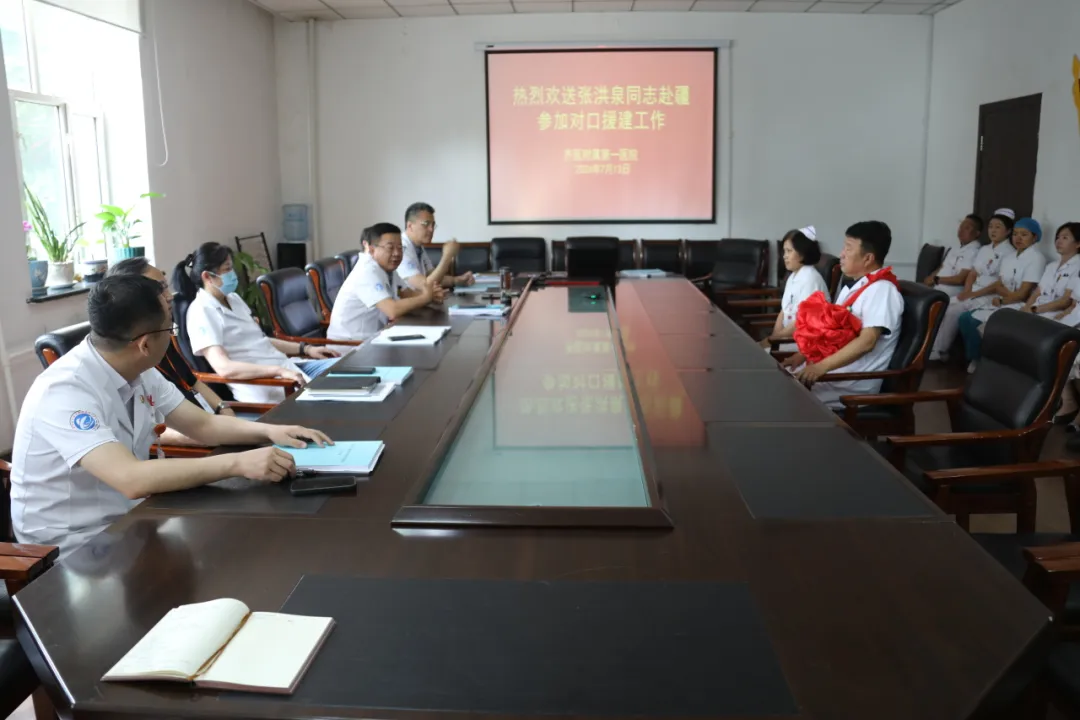 医院泌尿外科副主任张洪泉即将前往新疆兵团十师北屯市医院,开展为期半年的医疗援建任务,7月13日上午,医院在第一会议室为张洪泉同志举行援疆欢送会。党委书记刘晖,院长、党委副书记李忠原,副院长艾立辉、刘增良、刘忠锦,纪委书记张娜,党办、院办、工会、医务科等职能科室负责人和部分临床科室主任参加欢送会。