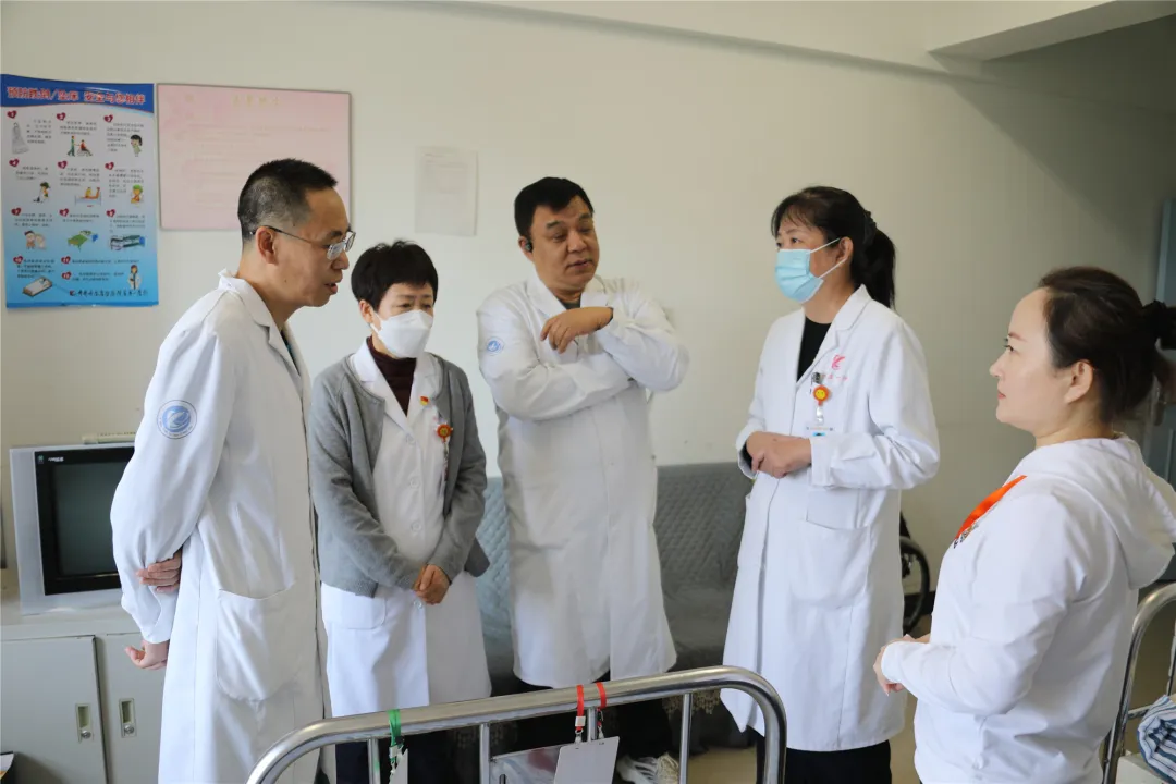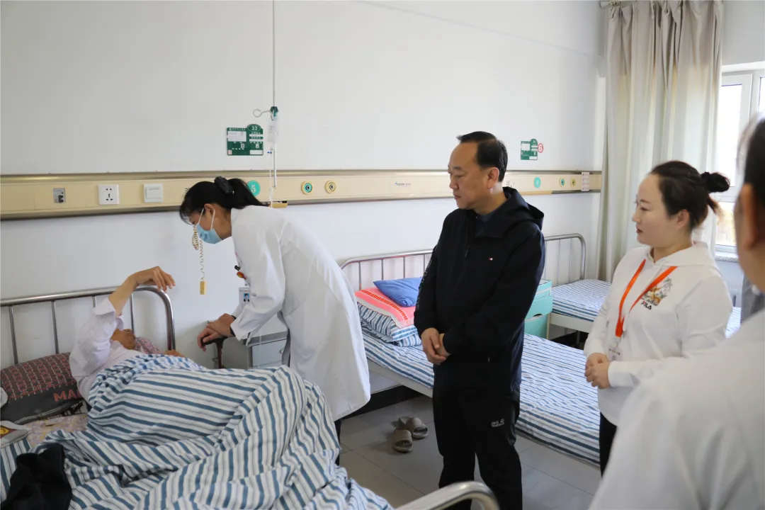 出发前,工会主席陈珊珊告诉大家,田老几天前不慎摔倒,正在住院治疗,因此,刘书记一行带着营养品直接来到田老的病房。刘书记拉着田老的手,代表医院党委向田老表示了深切的慰问,并向科主任及其家属详细询问了病情和治疗情况。刘书记关切地叮嘱田老要积极配合医生的治疗,保持积极乐观的心态,争取早日康复出院。同时,还要求医院工会及田老所在科室要全力以赴,为其治疗提供最好的条件和服务。