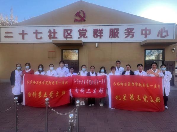 “主题党日+义诊活动”。医院各党支部组织了一场重阳节义诊活动。邀请齐齐哈尔医学院附属第一医院神经内科、心血管内科、全科医疗科等多位专家进老年公寓、社区、学校开展义诊活动。