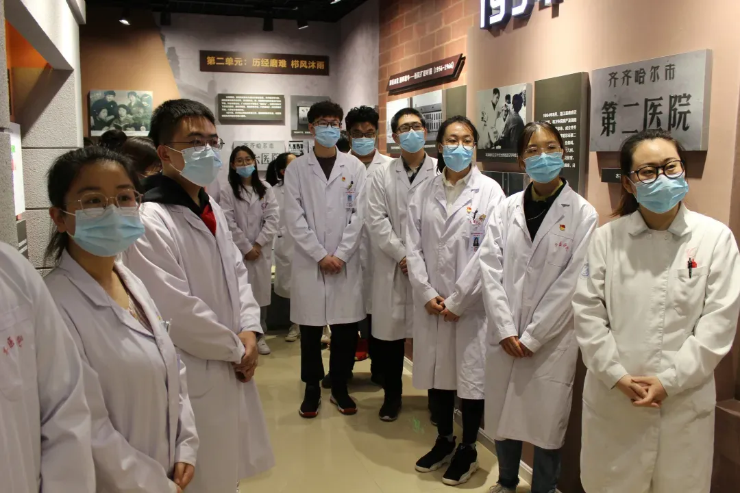 齐医附属一院院史馆于 2019 年12 月开馆并对外开放,获批“齐齐哈尔市科普教育基地”“黑龙江省科普基地”称号。展馆面积 306.98 平方米,馆内有9个展厅,展板312块,实物展陈 92 件,电脑影音设备两套。设立公放日和宣传网站,曾获“2023 年全国科普日活动优秀组织单位”“筑梦科技 科普先行”主题科普活动优质科普资源单位等称号。基地背靠三甲医院,深挖红色地域资源,1978年,医院曾在资源极其简陋匮乏的时期,成功开展省内首例滕关节置换术,填补省内空白;1986年,医院妇产科助推学院创建了中国第一个妇产本科专业,培育大批优秀妇产医师,省教委把妇产团队的奉献和敬业的精神以带头人王舒兰老师的名字命名为“舒兰精神”;2002年,成功开展先心病手术;医院承担国家六五、七五攻关课题,在八十年代开展遗传咨询门诊和新生儿尸检工作……,这些大医匠心故事充分体现了医学科学家艰苦奋斗、刻苦钻研、精益求精,为医疗事业奋斗终身的医者精神。作为齐齐哈尔医学院的附属医院,基地每年为近千名齐医学子开展“传承红色基因 探寻医者初心”开学第一课科普活动,“礼赞科学家,建功新龙江”科技工作者日宣讲活动,“大医匠心”系列主题线上线下宣讲活动,已然成为医学生立体、全面、生动的“思政大课堂”。