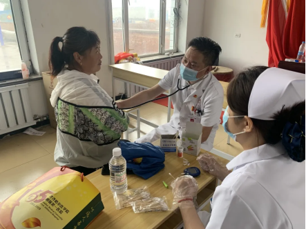 义诊现场,首届龙江名医、骨科专业委员会专家曹立新教授、普外科一病区许景伟主任、呼吸专业委员会林志国教授、神经内科五病区主任刘佳俊教授、心内科三病区刘佳副主任认真为乡亲们进行常见病、多发病的专业检查和康复指导,热心提供健康咨询,对血压、血糖异常者提出了合理的饮食、用药及诊疗建议,为大家讲解了常见病、多发病的预防知识和注意事项,超声医学科医生及两位护士为前来就诊的村民免费测量血糖、血压,同时进行免费的超声、心电等体格检查,医疗合作办工作人员现场维持秩序,为村民导诊,医务人员们认真、细致、热情的服务态度和工作作风,受到广大村民的一致好评。
