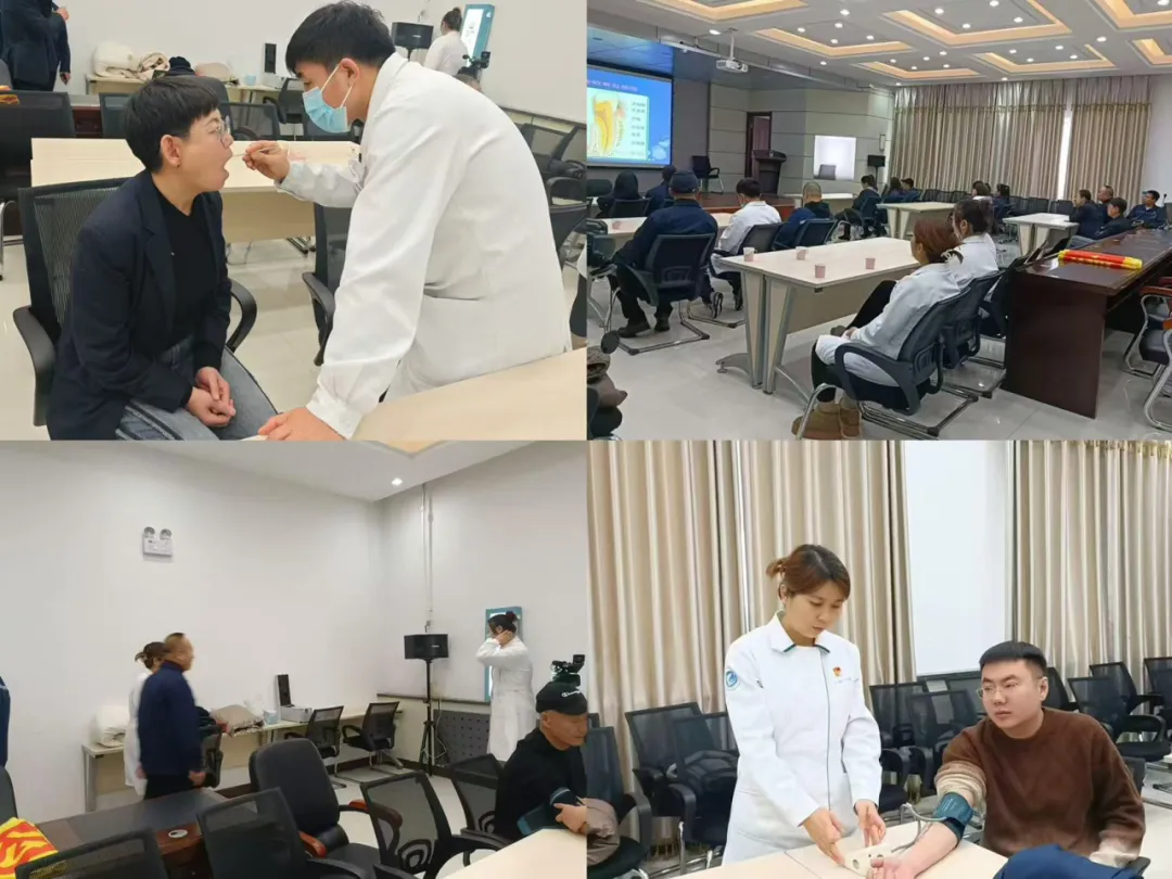 讲座结束后,五官党支部成员们立即投入了紧张的义诊活动中。高永志主任为员工们进行了口腔检查,耐心解答了他们关于口腔健康的疑问;吴庆峰主任则负责眼底检查和眼部疾病的筛查;王佳鑫负责测视力,邓利敏负责量血压,孙丽丽则为大家提供了健康指导。活动现场秩序井然,员工们纷纷表示,这样的义诊活动让他们感受到了实实在在的关怀和帮助。据统计,共有50多名员工接受了义诊服务,他们的脸上洋溢着满意的笑容。