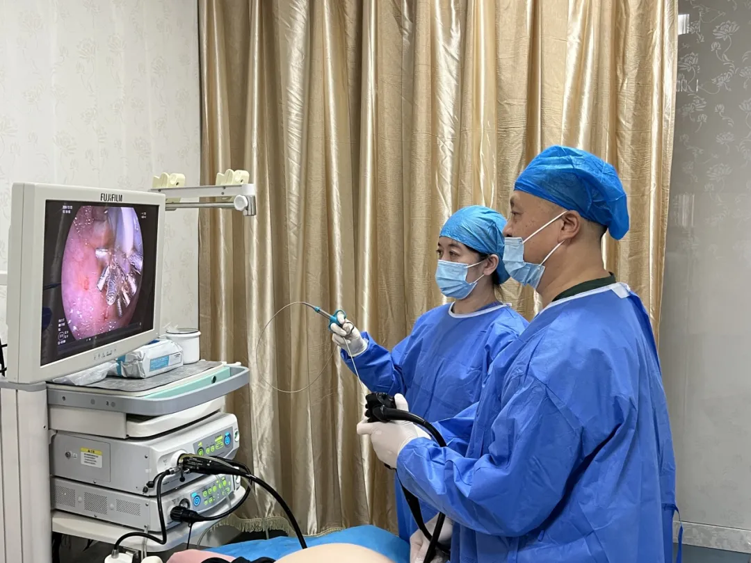 手术过程中,陆佩东主任凭借其沉稳的操作手法与精准的判断,带领团队成员有条不紊地进行着每一个步骤。从内镜的精准定位,到息肉的完整切除,再到创面的妥善处理,每一个环节都严谨细致,确保了手术的顺利进行。经过半小时的努力,陆主任终于成功将这一巨大息肉完整切除,术中患者生命体征平稳,未出现任何意外情况。