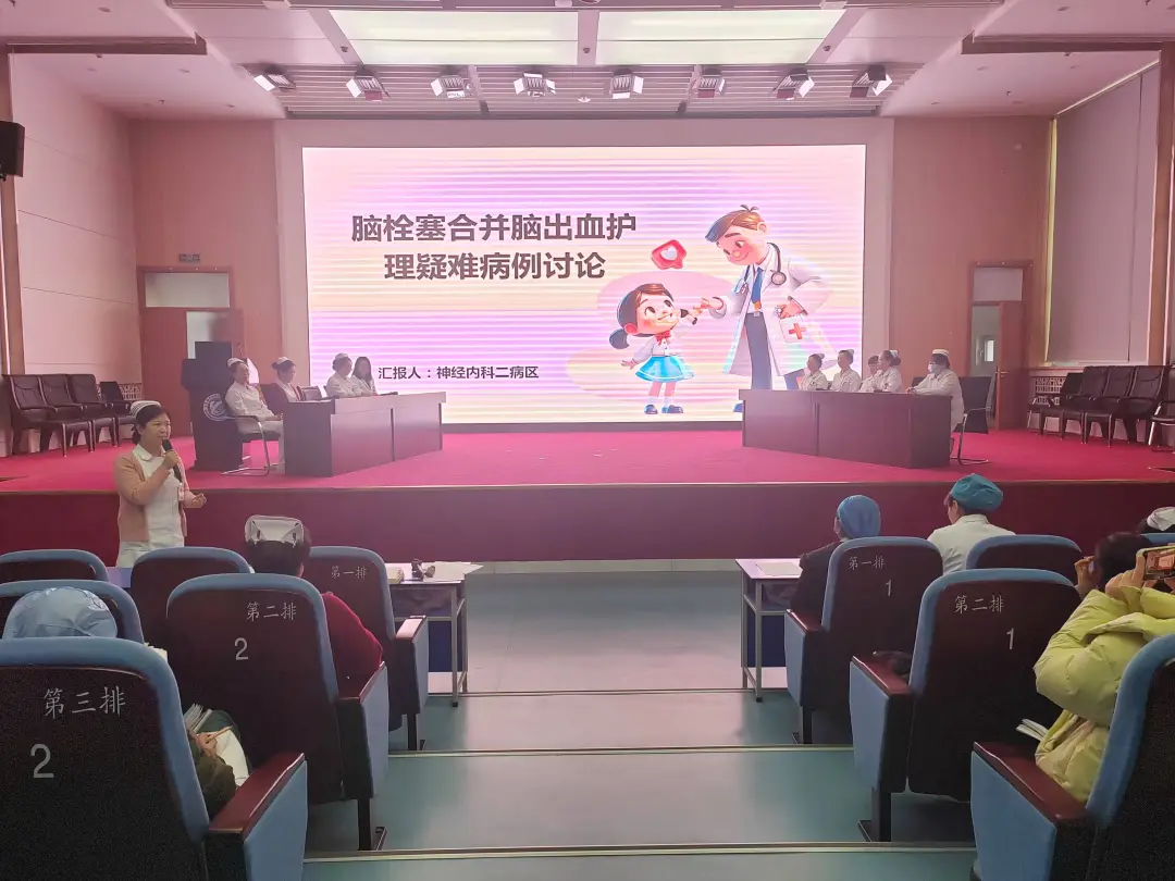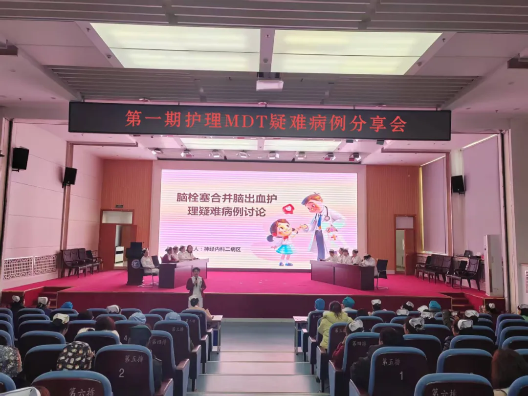 2025年2月26日 ,为提升我院护理团队对疑难病例的综合护理水平、促进多学科协作(MDT)模式发展,护理部在内科楼学术报告厅成功举办第一期护理MDT疑难病例分享会。本次分享会以神经内科二病区病例“脑栓塞合并脑出血护理”为主题,汇集了神经内科、康复医学科、呼吸内科、心血管内科、VTE小组等多学科护理专家,共同探讨复杂病例的护理方案与经验。
