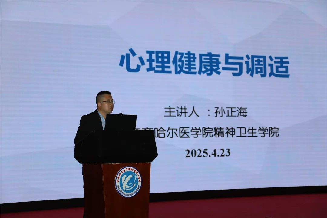 为进一步加强住院医师规范化培训学员心理健康教育,提升学员心理调适能力,营造积极向上的学习与生活氛围,齐医附属一院于4月23日15:00在内科楼学术报告厅举办心理健康专题讲座,讲座邀请齐齐哈尔医学院精神卫生学院孙正海副院长担任主讲嘉宾,全院住院医师规范化培训学员(含专硕并轨学员)参与此次讲座,会议由副院长刘忠锦主持。
