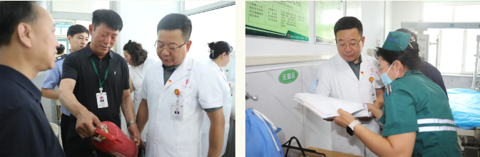 安全生产责任重于泰山。院领导一行还对科室病历书写、护理质量、院内感染、信息安全、后勤保障以及消防安全等情况进行了实地察看和现场督办。