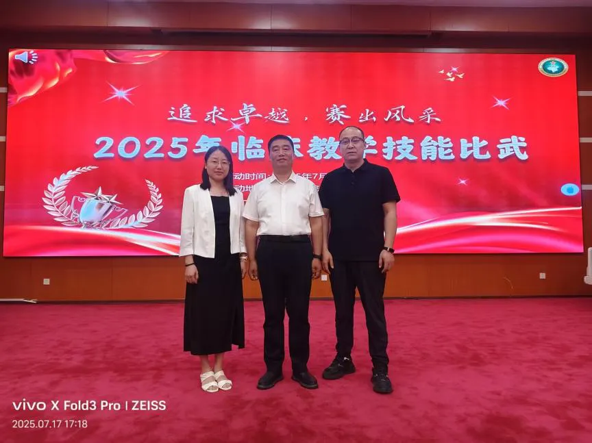活动第三天,三位主任受邀担任第八医学中心2025年临床教学技能比武评委。此次比武分为中级组(8名教师)与高级组(6名教师),第八医学中心院长谭映军参加开幕式并致辞,卫勤部副部长周瑾主持。