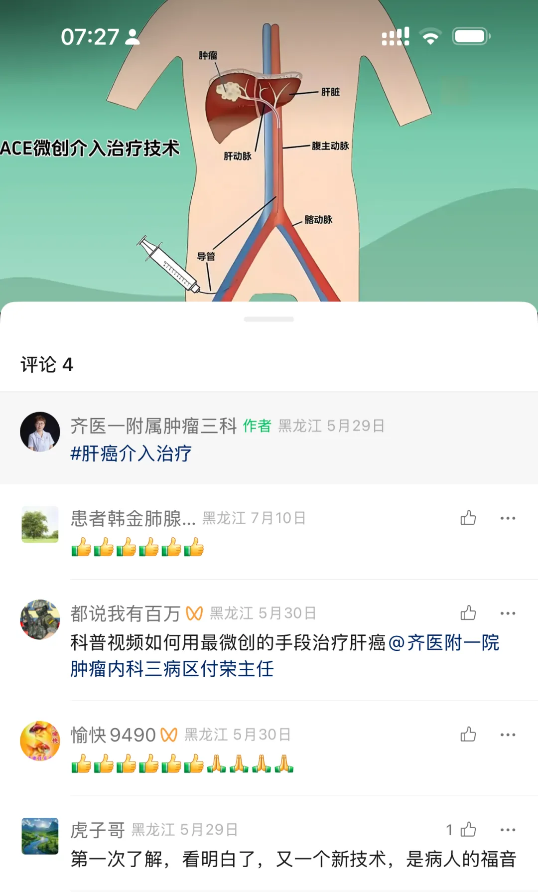 付荣主任多年来躬耕于肿瘤微创治疗,治疗效果好,手术风险小。免去患者去异地就医的麻烦及不必要的花费,深得患者和家属的信赖。以下是视频播出后,患者自发留言,正是这些来自患者的反馈和鼓励,激励医者不断前行!