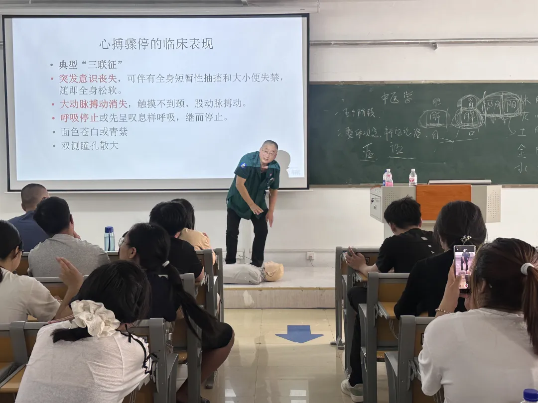医院学生工作办公室围绕“安全第一,预防为主”的主题,开展了系列安全教育活动。“开学第一课”聚焦校园日常安全,守好校园安全第一道关口;普及消防安全知识、详细解读违纪处分条例,全面提升学生的规则意识与自我防护能力;学生公寓管理委员会成员深入班级,开展宿舍安全专题宣讲,现场协调生活问题,为学生打造安全、舒心的居住环境。此外,医院还邀请急诊科副主任医师范希超为同学们开展急救技能专题讲座,通过生动的现场演示和互动教学,同学们掌握了心肺复苏(CPR)、创伤包扎等应急救护技能。