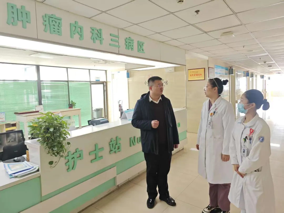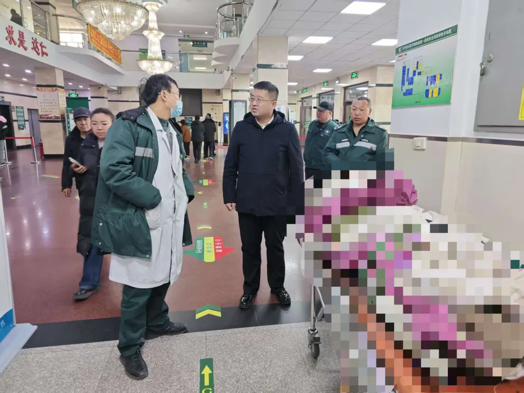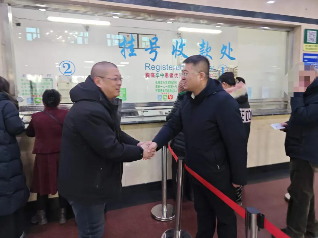 2月19日,农历正月初三上午8:30,副院长周扬带领医务部相关负责人,深入全院关键科室与关键岗位开展行政查房,实地检查春节期间医疗运行、安全生产及患者救治工作,并向节日期间坚守一线的医护人员送去新春问候。