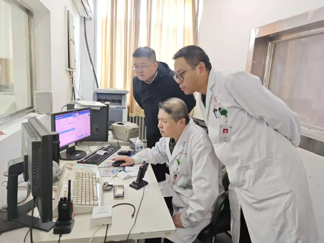 在门诊收款处,周扬亲切慰问值班人员,叮嘱大家工作期间注重服务态度与方式方法,以良好的精神风貌展现医院窗口形象。随后,他前往门诊CT室,积极参与临床医生的影像会诊,与一线医师交流诊疗思路,体现院领导对临床业务的高度关注与支持。